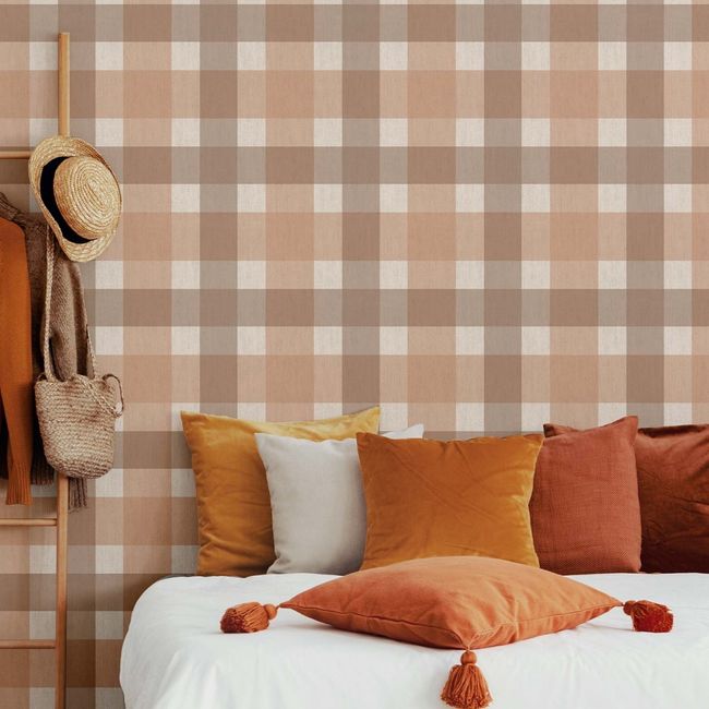 - Papel de Parede Top Stripes Xadrez Vichy Cinza Escuro e Vermelho Claro